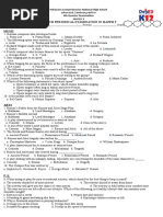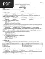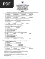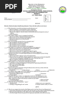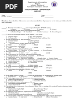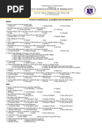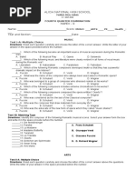 The document contains a practice exam for Grade 9 students covering multiple subjects - Music, Arts, Physical Education, and Health. The music section contains multiple choice questions testing knowledge of musical periods like Classical and Romantic eras as well as composers like Chopin, Liszt, and Berlioz. The arts section tests knowledge of artistic movements like Neoclassicism and Romanticism. The physical education section contains questions about cultural dances and festivals in the Philippines. Finally, the health section addresses commonly abused drugs in the Philippines and their effects on the body and brain.
