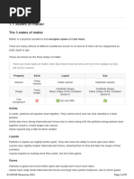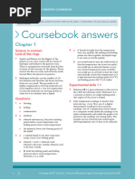 This document contains answers and explanations for exercises in Chapter 1 of the Cambridge IGCSETM Chemistry workbook. It provides detailed responses to questions about states of matter, changes of state, temperature vs time graphs, dissolving, diffusion, molecular structure and the kinetic particle theory. The answers give the key points about each topic in clear language suitable for students taking an introductory chemistry course.
