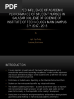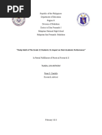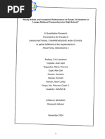 students of Adventist University of the Philippines SY 2014-2015 as measured by their Grade Point Average (GPA). To answer the above cited problem, an answer to the following will be sought: 1. What is the extent of study habits of the respondents in terms of: a. Reading b. Writing c. Note-taking d. Study Time 2. What is the academic performance of level II nursing students in terms of Grade Point Average (GPA)? 3. Which among the variables significantly predicts the study habits and academic performance of the respondents, considering the following moderator variables? a. Age b. Gender c. Socio-economic status d. Reading e. Writing f. Note-taking 4. Is there any significant relationship between study habits and academic performance of the respondents?