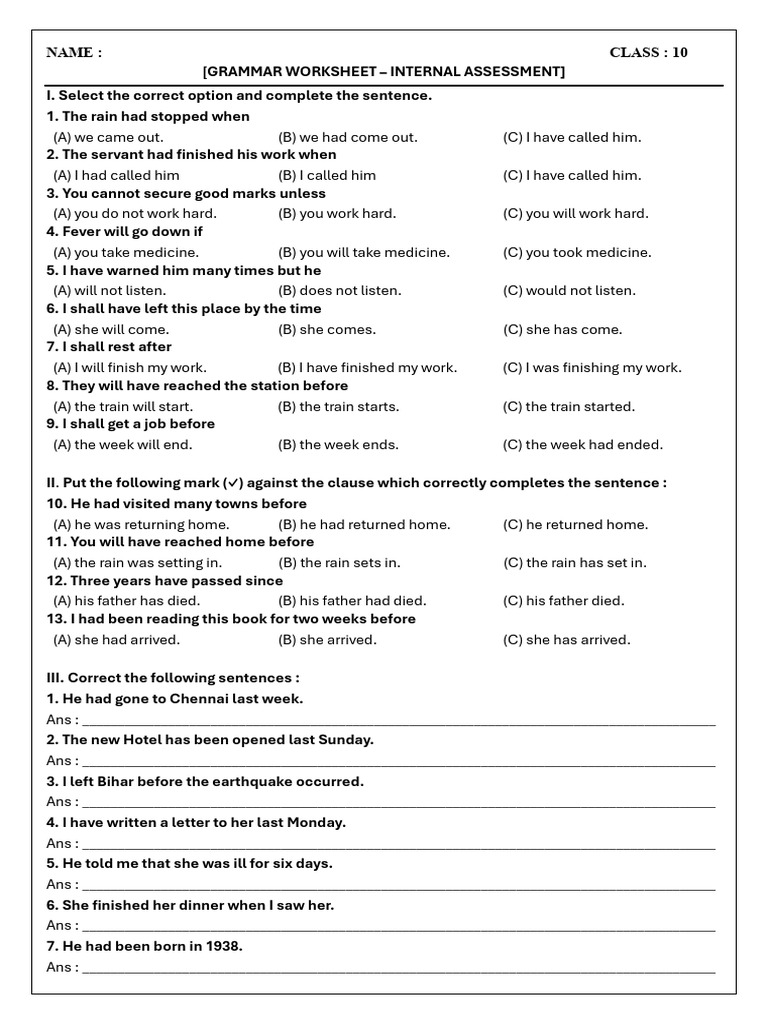 [GRAMMAR WORKSHEET – INTERNAL ASSESSMENT]