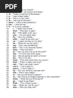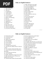 This document contains 100 sentences commonly used in daily English conversations. The sentences cover a wide range of topics including greetings, partings, asking questions, making requests, expressing opinions, and describing daily activities. Examples include "Good morning!", "How are you?", "Please help me with this", "I will come again", and "Drive carefully". The sentences provide examples of basic English that can be used in many everyday situations.