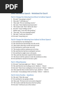 Grade 8 Direct and Indirect Speech Worksheet