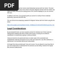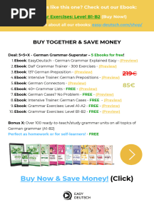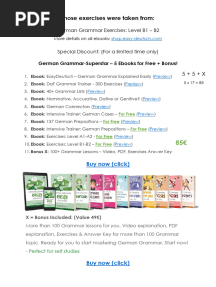 Our ever-growing collection of German documents will help enrich your learning, whether you’re an experienced speaker or brand new to the language. Explore thousands of textbooks, study guides, sample exams, handbooks, dictionaries, and more. Titles like Short Stories in German For Beginners and Learn German With Stories: Café in Berlin will make your learning experience more engaging and enjoyable. More advanced speakers will enjoy reading in-depth articles, manuals, and documents to test their comprehension. So whether you’re learning German in a university course, or you’re a past speaker whose skills have lapsed, our collection has resources curated for all knowledge and skill levels. Planning a trip to Germany? Explore useful documents to help you learn basic vocabulary and common turns of phrase. Eager to converse with German friends or relatives? Immerse yourself in our collection of German PDFs covering grammar, syntax, and more. No matter what your particular goals are, you’ll find new and exciting ways to learn German when you sign up for Scribd.
