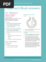 Workbook Answers: Unit 1 Respiration