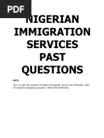 This document provides sample past questions and answers that may be seen on the Nigerian Immigration Aptitude Test, covering topics like the roles and ranks within the Nigerian Immigration Service, types of passports and visas, offenses that could lead to deportation, and changes that have occurred in the NIS since 1999. It includes 14 questions with answers on concepts like the CERPAC permit, as well as a short passage on the GMAT about Robert Morris, an influential merchant and financier during the American Revolutionary War.