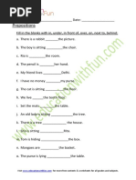 • Exercise 2 Fill in the blanks with the correct Prepositions