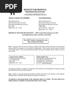 REQUEST FOR PROPOSAL Bumblebee Electric Propulsion Light Sport Airplane Poway, California Article I. Introduction S.R.H. Holdings, Inc requests that your company make a proposal for your services on Bumblebee Electric Propulsion Light Sport Airplane. The following proposal request will outline the project goals and detail the format you should submit your proposal. Please read the timeline carefully. In order for your proposal to be considered, your proposal must meet our deadlines included in the timeline under Section 2.02. Section 1.01 Location and Sponsor Your bid is for operation on Bumblebee Electric Propulsion Light Sport Airplane located at 123 Main St., Poway, California, 75424. Section 1.02 Management Ryan B. Jagger, Paul Grumman, Martin Lockheed Jr. will be managing this project. They will be on location during the project. Peter J. Olsen will be responsible for the project's timely completion. Section 1.03 Contact Information Please contact C.J. Garing for questions about the proposal submission details: Phone: (415) 456-1513 Fax: (4150 660-3457 E-mail: cjgaring@[Link] Please contact Paul Grumman for questions about the project details: Phone: (415) 745-1677 Fax: (415) 654-8674 E-mail: pgrumman@[Link] Article II. The Project