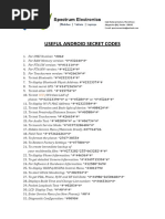 This document lists various secret codes that can be entered on a phone for diagnostic, testing, and configuration purposes. The codes allow accessing features like displaying IMEI numbers, firmware versions, factory resets, sensor testing, network locking, and more.